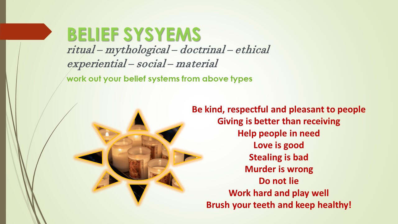 Think of your belief system and consider arguments for and against and reflect on this (Levels 2,3,4)