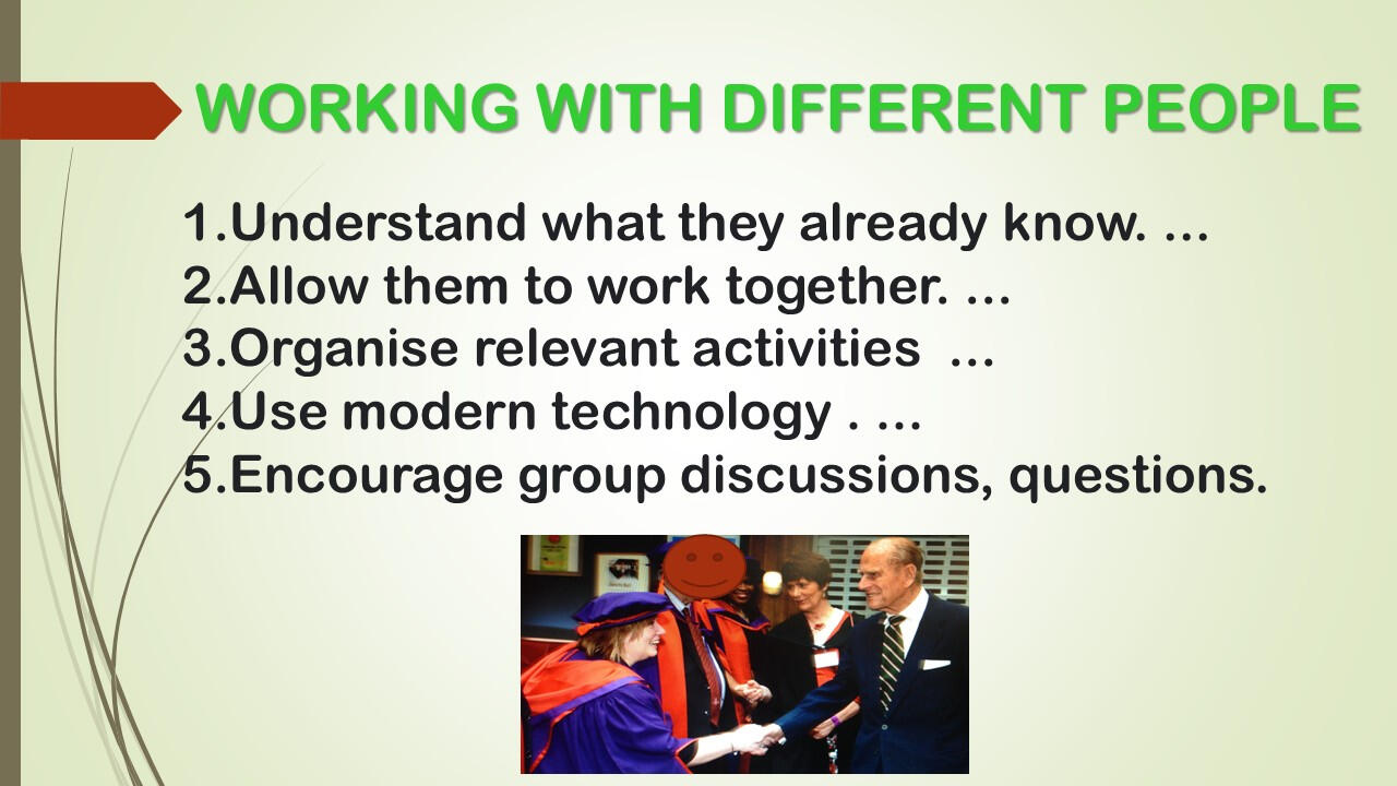 Organise a discussion with a plural group to review their challenging issues and suggest changes (Levels 5,6)
