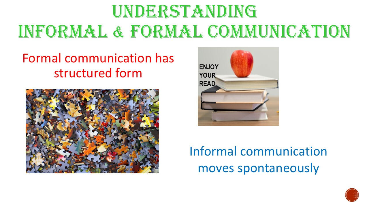 Review informal and formal communication, as explained in literature, and discuss differences (Levels 5,6)