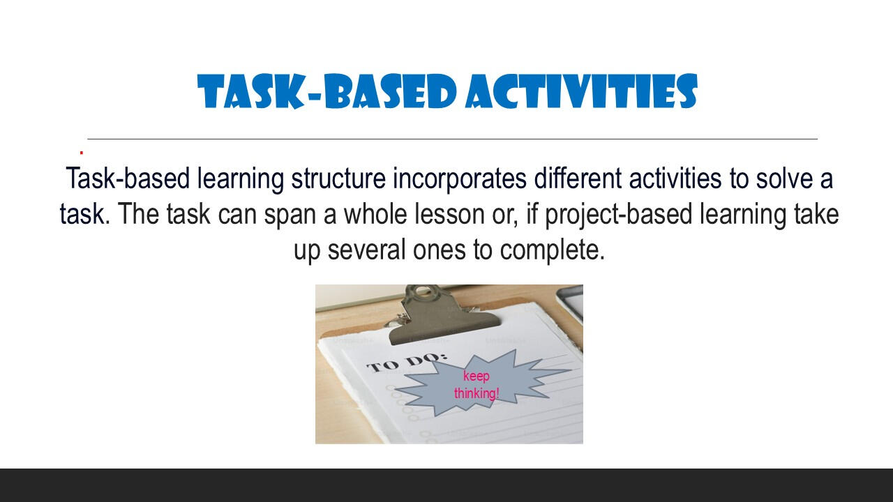 Devise a leaflet to explain the importance of task-based activities for teaching communication (Levels 7.8)Form, Content and Use