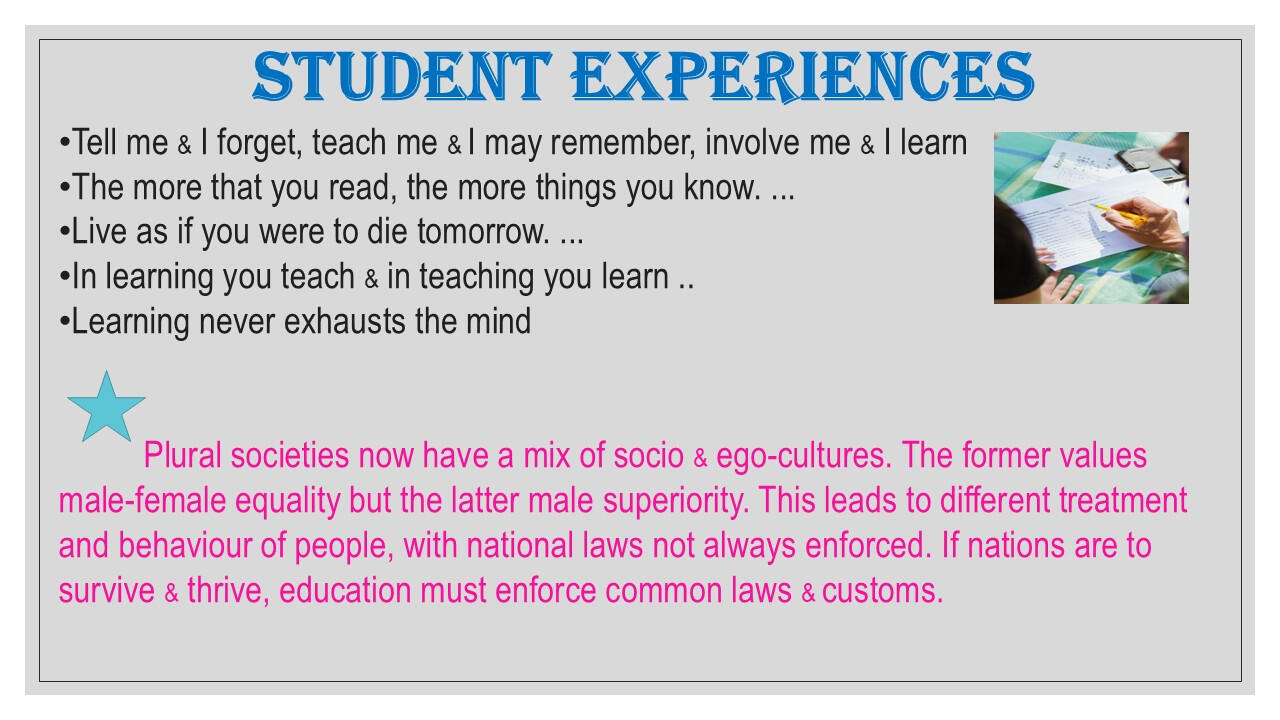 The main issues for education, in a diverse world, are language barriers, cultural differences, the decision-making process, discrimination, skewed content, limited universal access and varying time spent in formal study. Lack of teaching experience, time, classroom management, discipline, and insufficient foreign language knowledge are problems of teachers and students:Time constraints – due to frequent testing schedules implemented in countries like Britain to limit holistic concerns