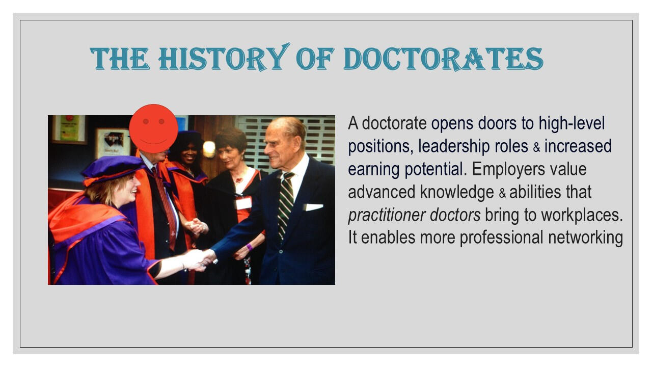 Review the history of doctorates across the world, and discuss the model needed for the modern world (Levels 7,8)